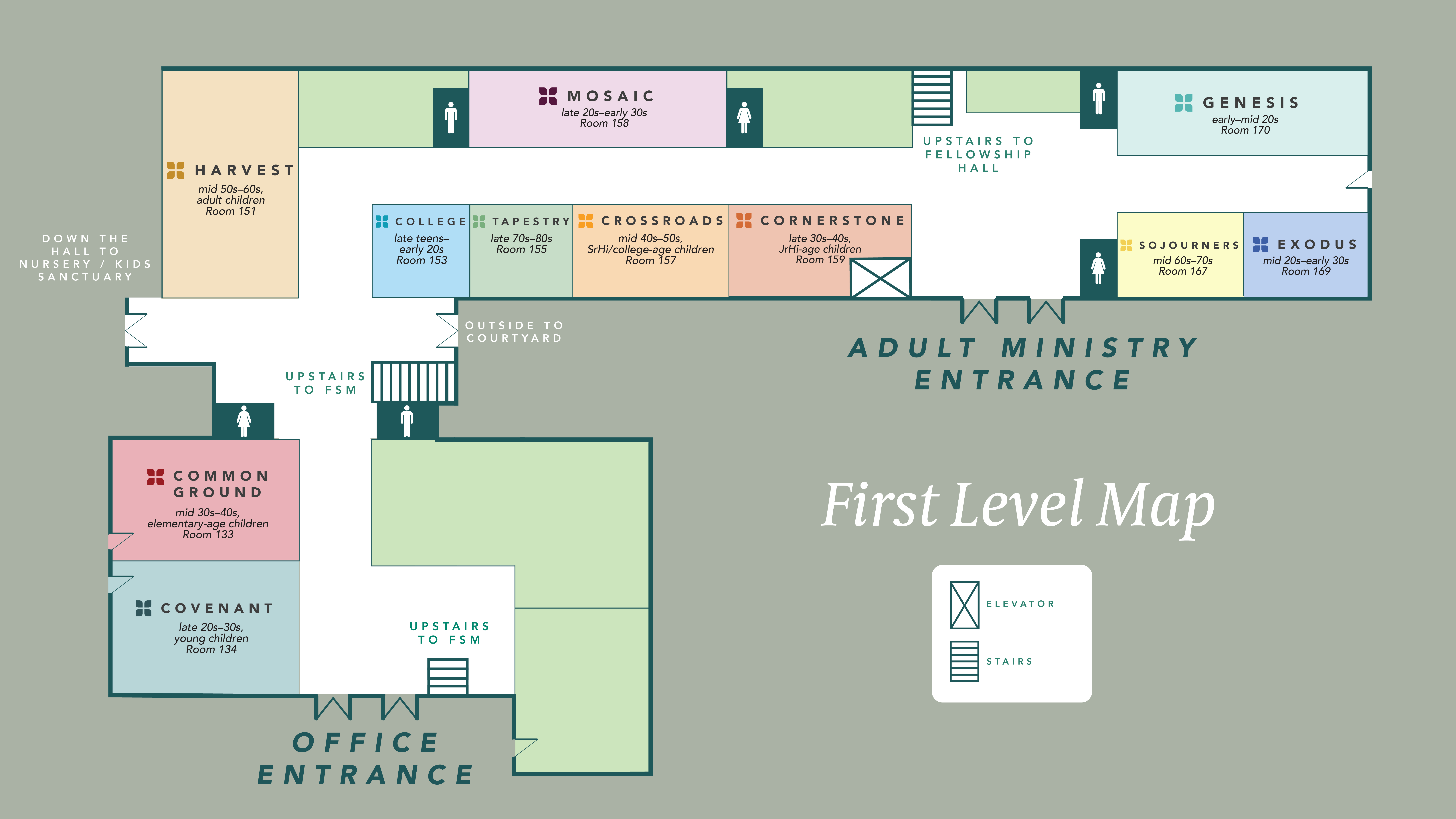 Parents of JrHi-age children; singles and couples primarily in their late 30s–40s